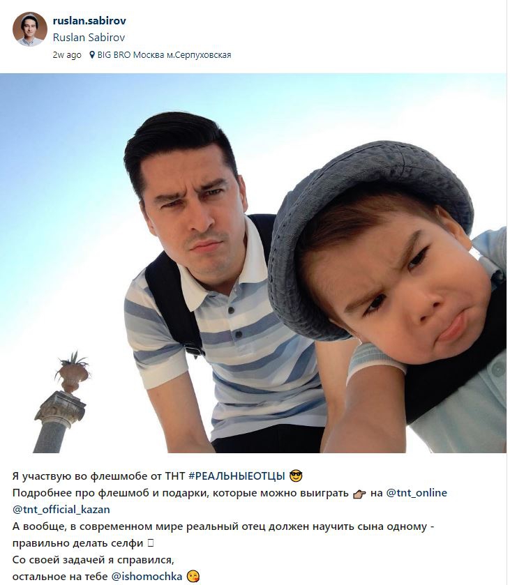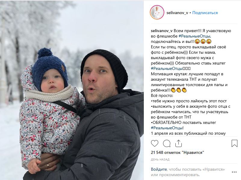 Чтобы подключиться к флешмобу, пользователи должны были выложить в сеть фото отца с ребенком под хэштегом #РеальныеОтцы. 1 апреля экспертная группа телеканала ТНТ назвала лучшие работы, авторы которых получили эксклюзивные парные свитшоты — для отца и для ребенка.