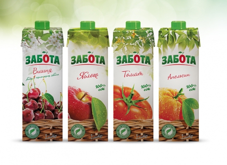 Брендинговое агентство REALPRO разработало название, позиционирование и дизайн-концепцию торговой марки соков «Забота» для кемеровской компании ООО «Новые технологии».