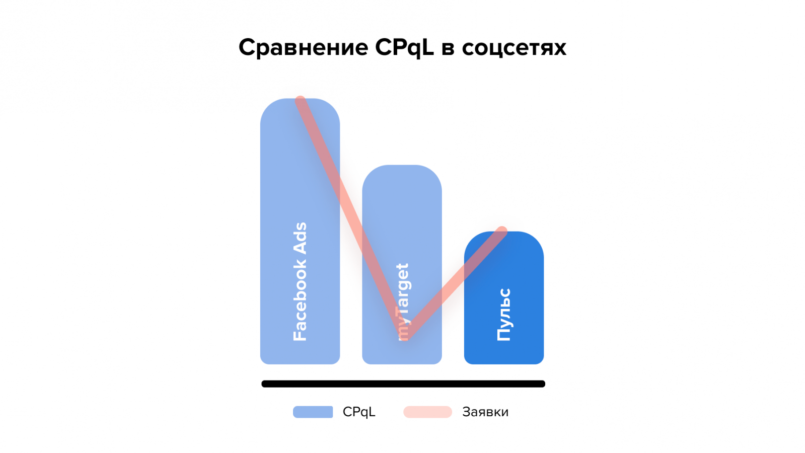 На графике видно, что мы снизили стоимость предодобренной заявки на 59%. Хотя через Facebook Ads мы получили большое количество заявок, их стоимость была самой высокой.