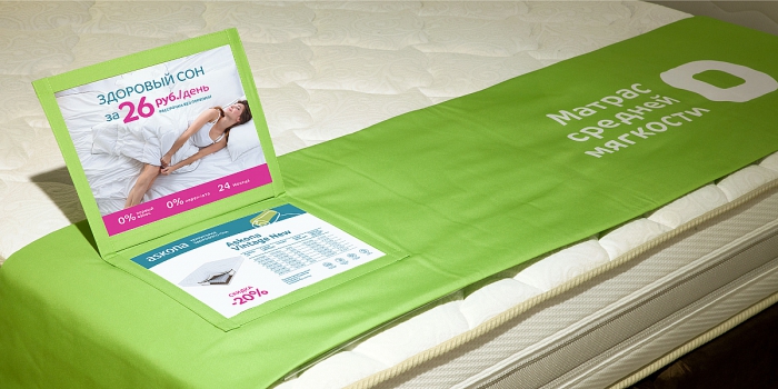 Василий Омелье, партнер и Креативный директор Weavers Brand Consultancy прокомментировал: "Особенно важным было решение разделить магазин на два больших пространства: зону интерьерной выкладки и функциональную «зону сна». В интерьерном пространстве размещены так называемые экспозиционные модули, по сути, готовые спальни со всем набором необходимой мебели и аксессуаров. В «пространстве сна»: легкий полумрак, ритмически вертикальные светильники на стенах в комбинации с акцентным освещением матрасов, а также система пиктограмм вместе с цветовым кодированием для облегчения навигации по типам жесткости матрасов."