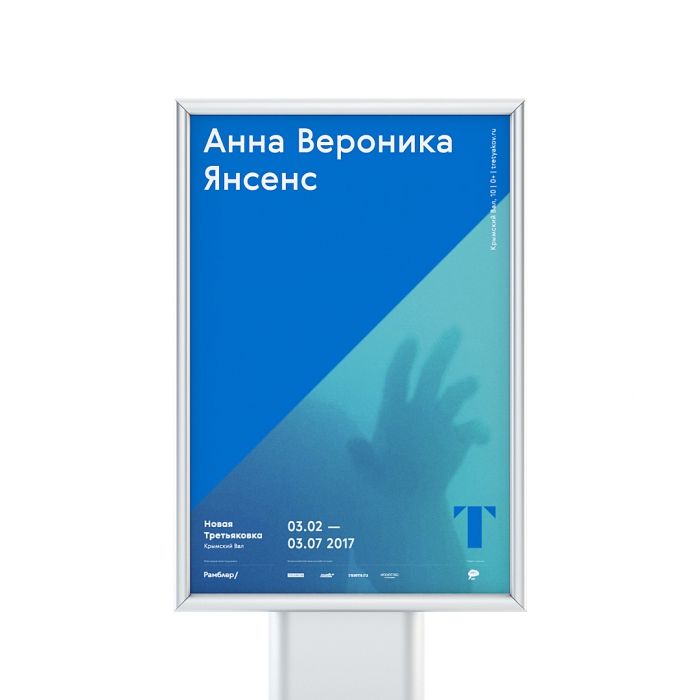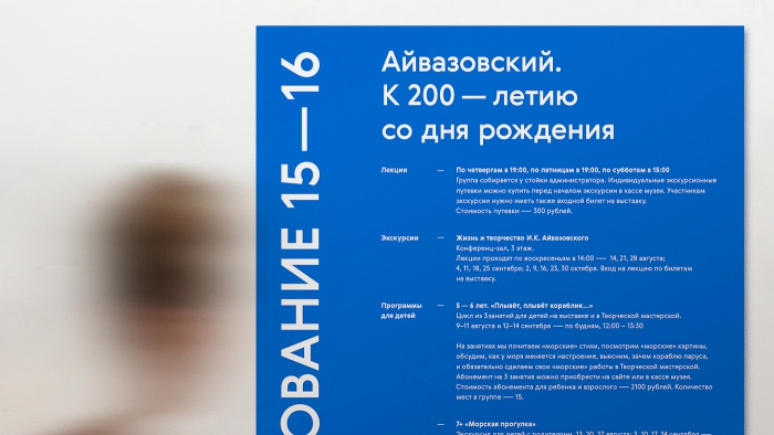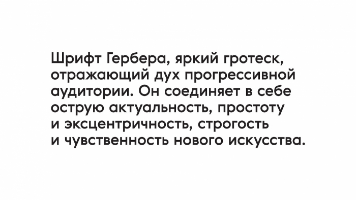 Кроме цветов, площадки музея различаются также и шрифтами. Для традиционной Третьяковской галереи в Лаврушинском переулке команда проекта выбрала академический шрифт William, а для Новой Третьяковки (на Крымском Валу) – шрифт Gerbera, который должен отражать прогрессивный дух выставок.