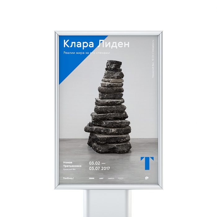 В визуальном стиле Новой Третьяковки есть и свой особенный элемент, которого нет у других площадок, – радикально укрупненный треугольник буквы «Т», образующий диагональ. Он символизирует движение, взгляд в будущее и новую точку зрения на искусство.