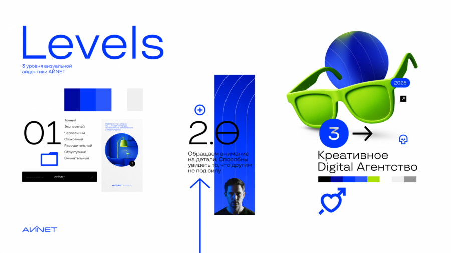 «Мы в АЙNЕТ прошли путь глубокой трансформации: из нишевой интернет-студии превратилось в зрелый бренд, который заявляет о себе на рынке. Пересмотрели внутренние процессы и департаменты, прописали принципы, миссию и слоган. А новый визуальный код стал логичным продолжением внутренних перемен», — делится команда агентства.