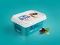 Дизайн упаковки сохранил «греческие» мотивы, но был выбран другой оттенок голубого цвета, чтобы сыр выделялся на фоне конкурентов. Название бренда дополняет тематическая фуд-зона и наименование продукта внутри линейки Delissir. В дизайне выделяются иллюстрации: маленькие цветные коровы на велосипеде. Яркие элементы дизайна на белом фоне должны привлечь внимание посетителей супермаркета.