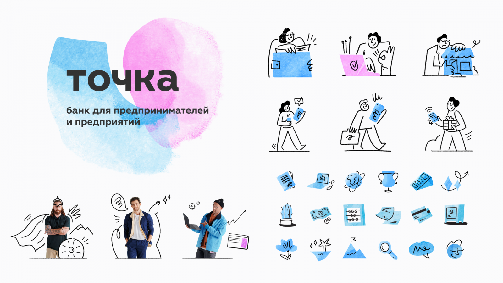 Фирменная графика — глоток свежего воздуха среди 3D-графики других банков. Такую графику несложно воспроизвести, но при этом её нет на стоках в таком колоссальном количестве, как иллюстраций с гиперболизированными конечностями, которые присутствуют во многих каналах коммуникаций. «Точка» взяла за основу стиль бельгийских комиксов, который придает визуальной части европейских характер и подчеркивает расширение географии и аудитории банка.