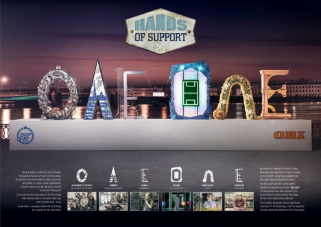 Спонсорская программа к запуску сотрудничеству ОБИ и ФК "Зенит" - "Руки поддержки"