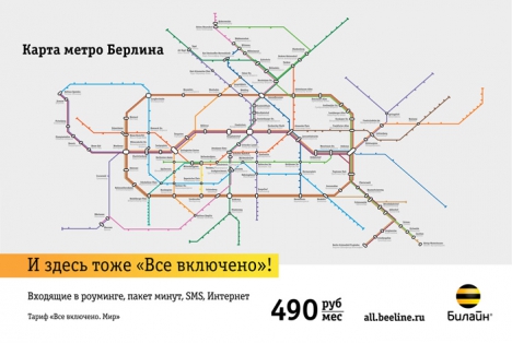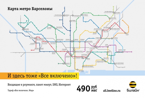 Стикеры мобильного оператора Билайн в метро - "Все включено"