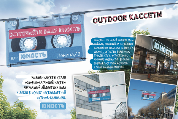 Еще один проект Red Pepper - "Кассеты-перетяжки" (подкатегория - услуги населению), созданнвя для рекламы екатеринбургского бара "Юность".