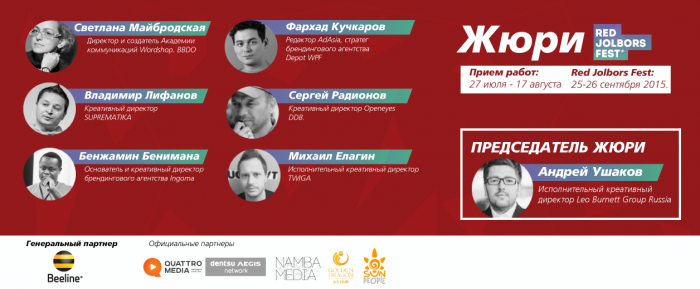 Центральноазиатский фестиваль рекламы Red Jolbors Fest объявил о старте приема работ и представил жюри фестиваля. Работу можно подать с 27 июля по 17 августа на сайте www.jolbors.com.