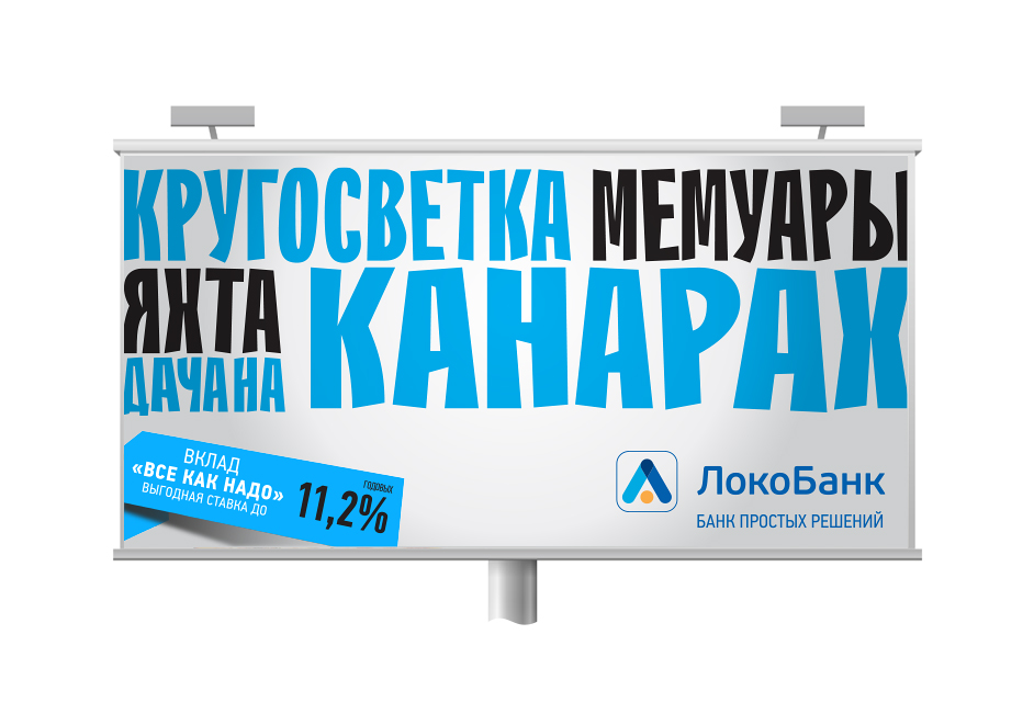 В рекламной кампании креаторы заявляют, что «Локо-Банк» - это банк для реализации любых целей клиента, а решения для их достижения максимально просты. Достаточно лишь выбрать необходимый продукт.