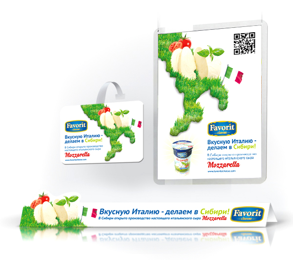 Помимо всего прочего креаторы разработали рекламную кампанию по продвижению сыров Mozzarella под ТМ «Favorit cheese».
