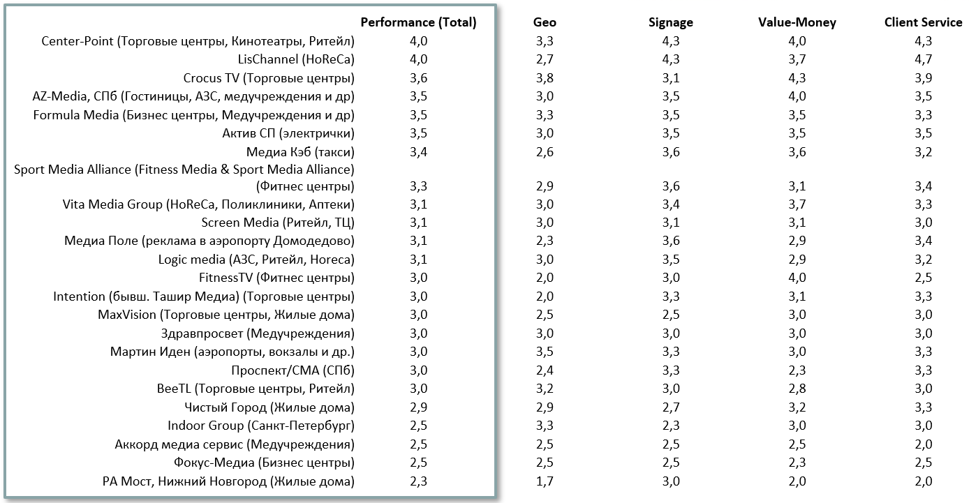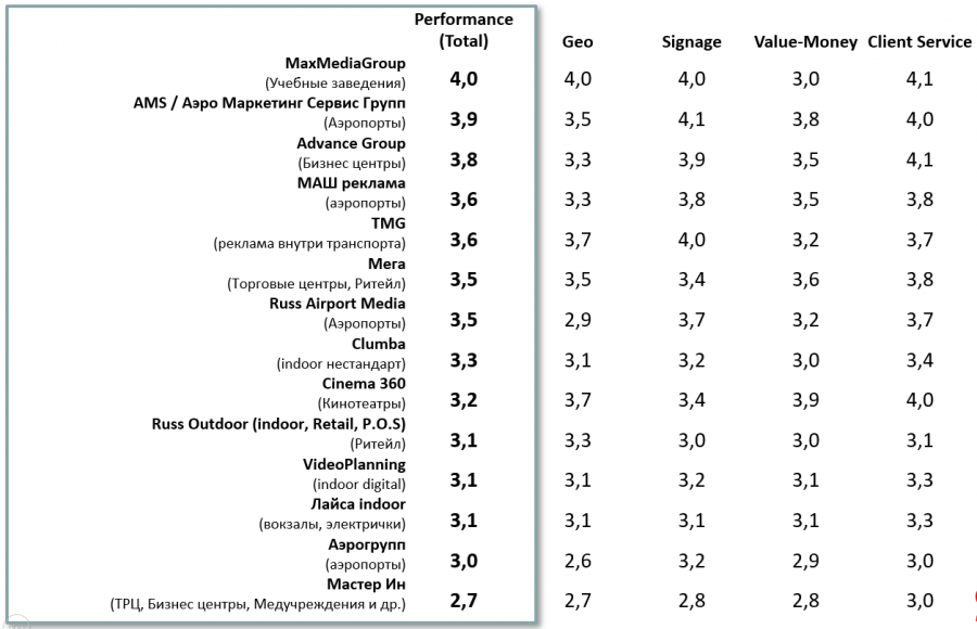 - работает с широким кругом клиентов и имеет высокий объем продаж/оборот исключительно по Out-of-Home (наружка или indoor).