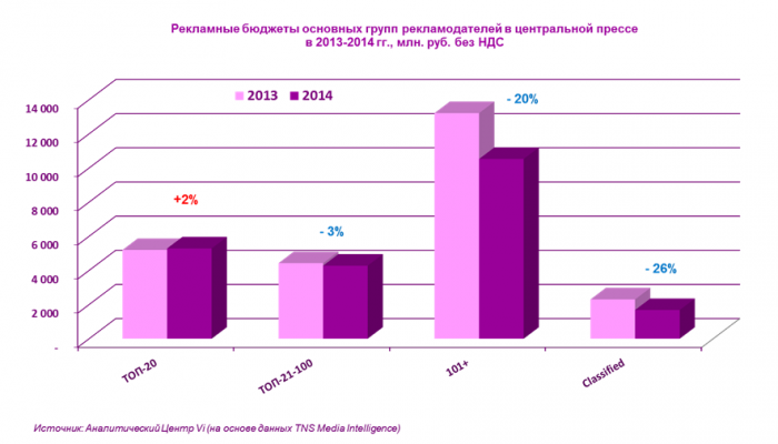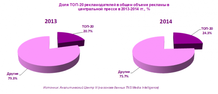 А доля 20 крупнейших рекламодателей в прессе увеличилась до 24,3%.
