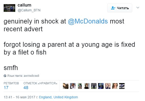 Позже британское подразделение McDonald’s удалило спорную рекламу, созданную агентством Leo Burnett London.