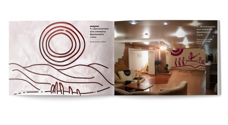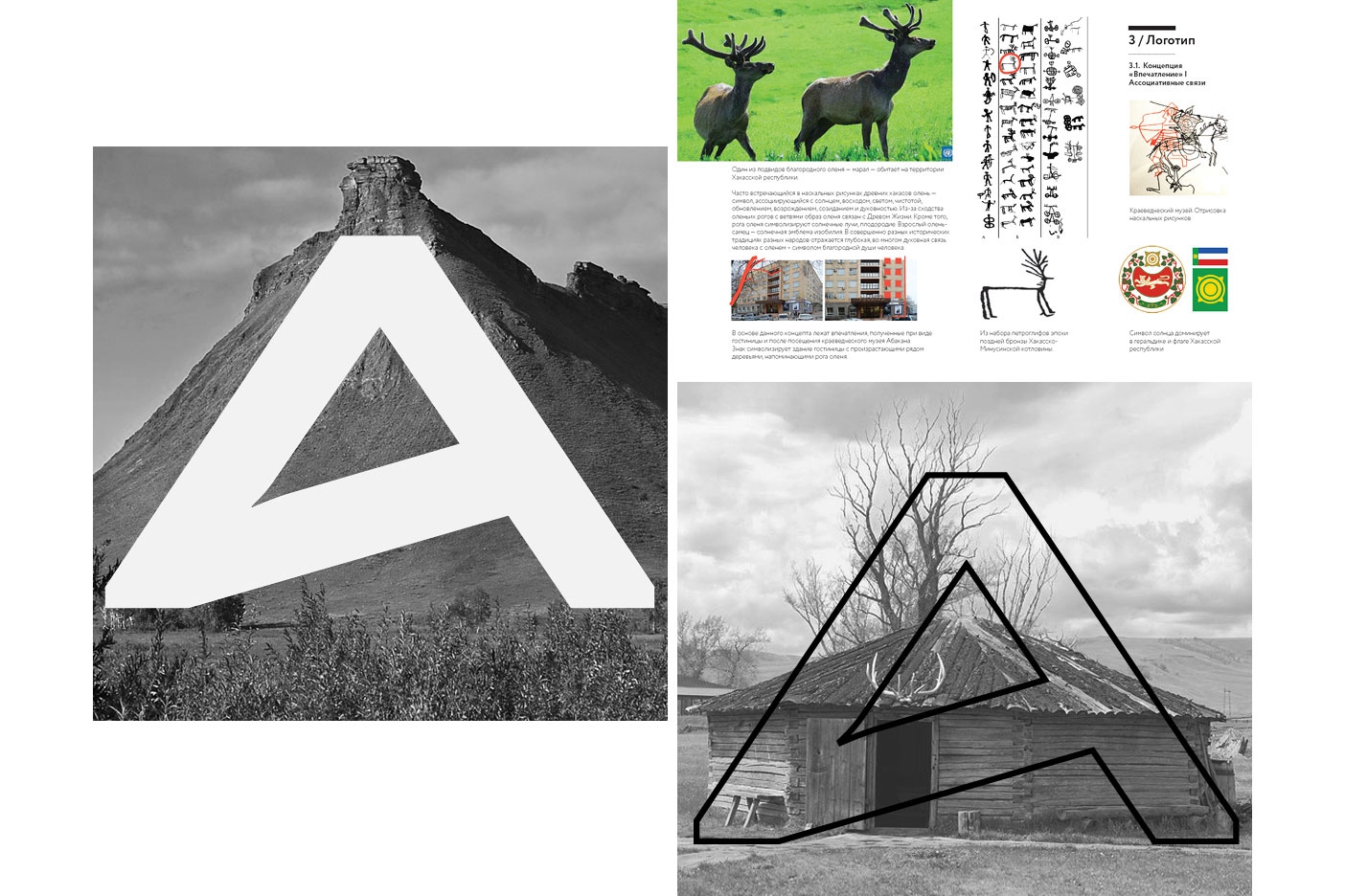 Фирменный знак представляет собой симбиоз из нескольких символов: здания гостиницы, марала, дерева и солнца, выполненных в стиле наскальных изображений эпохи поздней бронзы Хакасско-Минусинской котловины. Рисунки того периода отличаются контурным исполнением, отмечают авторы проекта.