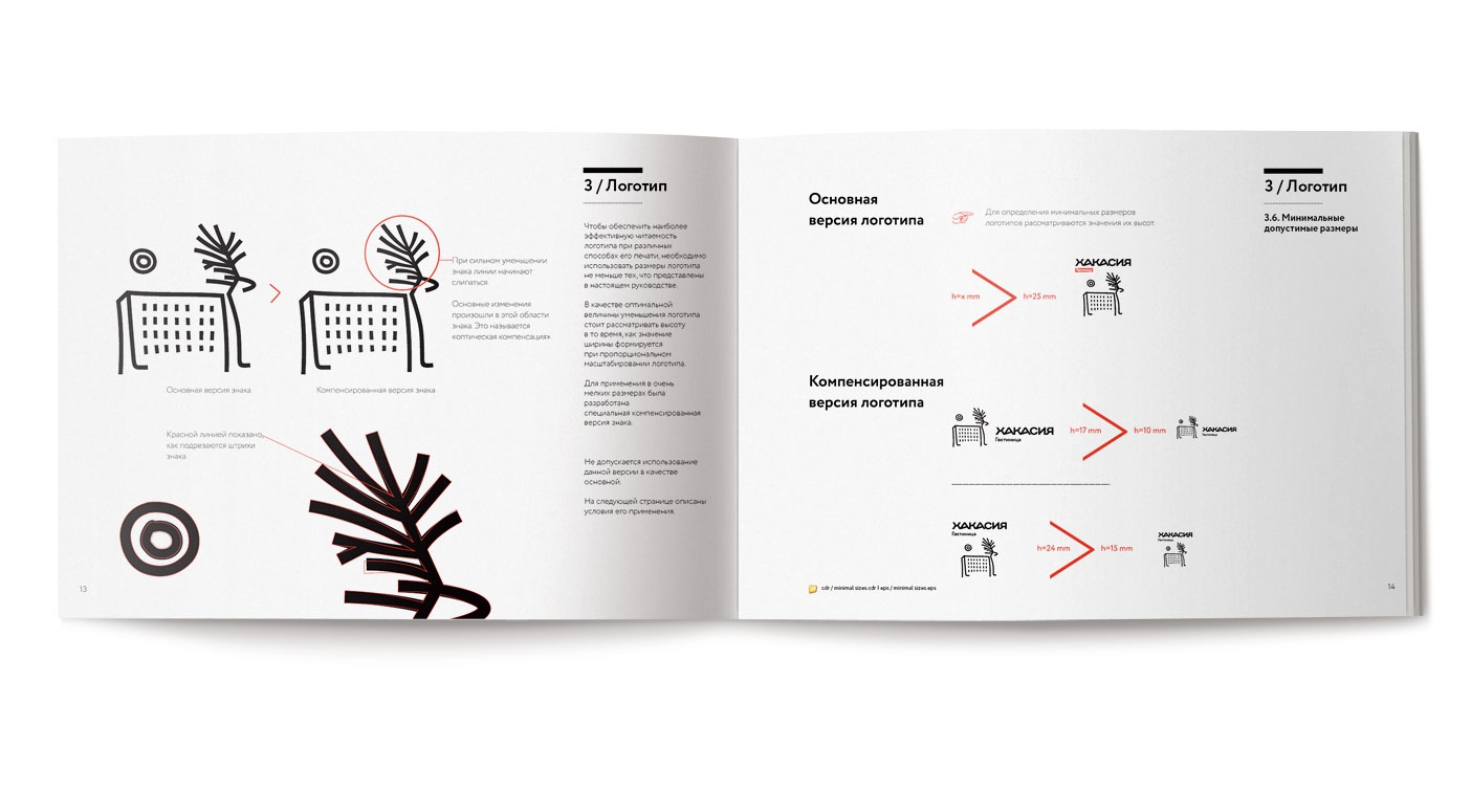 Морфология построения шрифта разрабатывалась на основе этнических особенностей, присущих хакасской культуре. Несмотря на наличие этнических корней, написание «Хакасия» выполнено в современном стиле. Особое внимание обращает на себя графема «А», заключающая в себе образ гор: все остальные буквы будто «подчиняются» буквам «А».