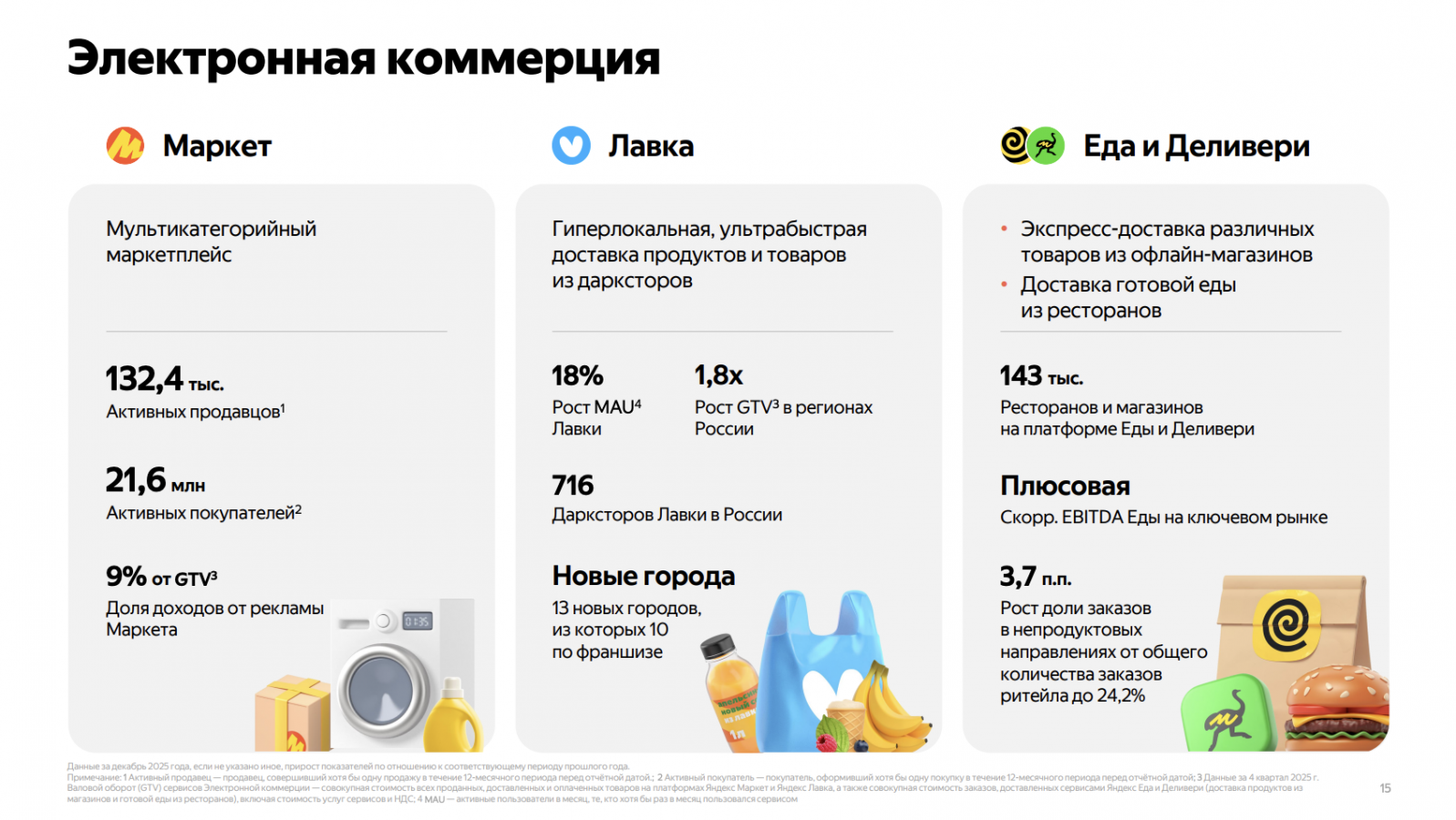 Общий оборот направления «Финансовых сервисов» вырос на 44% год к году. За 2025 год GMV подразделения впервые превысил 1 трлн руб. с ростом на 80% год к году.