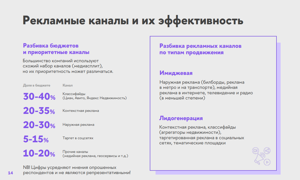 Цифровые инструменты занимают лидирующие позиции. До 40% рекламных бюджетов приходится на классифайды, такие как «Циан», «Яндекс Недвижимость» и «Авито». Застройщики также выделяют контекстную рекламу и таргетинг в социальных сетях в числе наиболее эффективных инструментов лидогенерации.