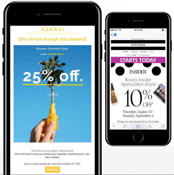 Акция с привлекательными предложениями, который, как полагают опрошенные маркетологи, представляет собой один из наиболее эффективных приемов, совсем не так прост, как кажется. Эти предложения должны быть лучше базовых (например, таких как скидки при подписке) и сфокусированы на привязке предложения к промо-акции, действующей ограниченное время. В качестве примера в отчете приведены акции австралийского производителя средств по уходу за кожей Asarai и Sephora «Beauty Appreciation». В данном случае, летние скидки — это таргетированные, действующие определенное время предложения для стимулирования дополнительных продаж лояльным потребителям рекламируемых брендов.