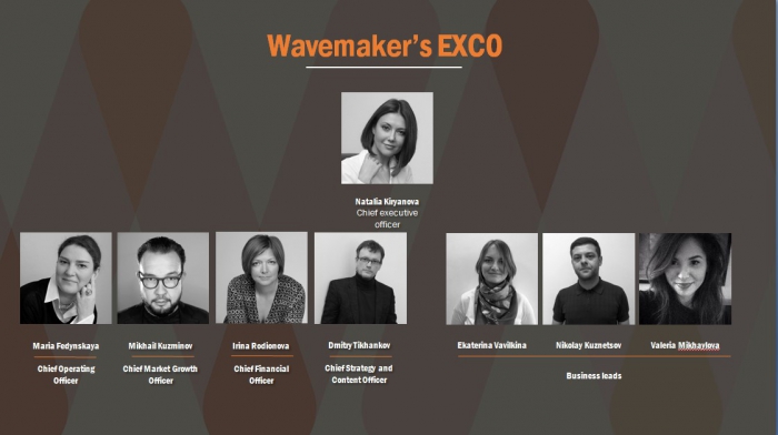 Ранее сообщалось только о назначении генерального директора (Chief Executive Officer) агентства — Натальи Кирьяновой, прежде занимавшей должность заместителя гендиректора MEC. Под ее руководством проходит запуск объединенной структуры Wavemaker.