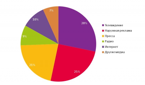 Наибольшую из всех сегментов динамику в 25% показал интернет. Такой рост обусловлен активным развитием региональных интернет-площадок, ростом посетителей этих ресурсов и, как следствие, повышением интереса рекламодателей к интернет-рекламе.