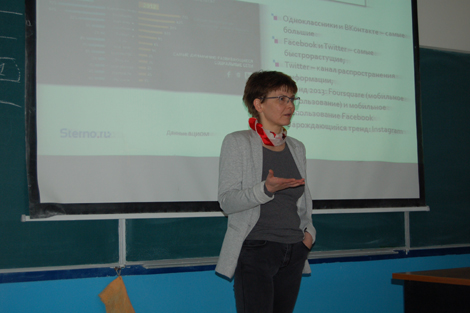 Марина Мачерет, руководитель отдела маркетинга компании Медиалогия проводит мастер-класс об исследованиях в PR