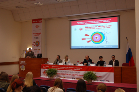 16 и 17 апреля 2013 года в Москве в Российском университете дружбы народов прошла VII всероссийская научно-практическая конференция "РЕКЛАМНЫЙ ВЕКТОР-2013: актуальные коммуникации" для молодежи и студентов коммуникационных специальностей, собравшая более 250 участников.