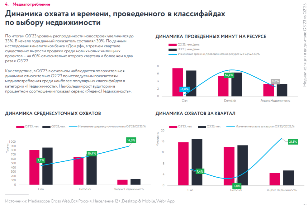 Наиболее заметный рост стоимости закупки продолжают демонстрировать сегменты бытовой техники и электроники, одежды, обуви и аксессуаров, где стоимость конверсии увеличилась до 95% в некоторых перформанс-инструментах и медианно на 30−50%. На обе отрасли значительно влияние оказали рост стоимости клика (CPC) в результате высокого уровня конкуренции в аукционах и падение конверсионности из-за оттока потребителей в маркетплейсы и офлайн-точки продаж.