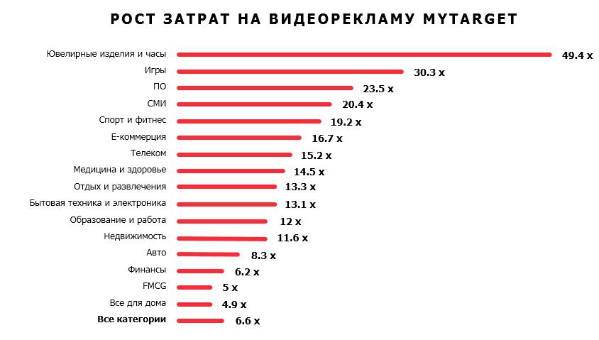Наряду с традиционными пре-роллами и баннерами рекламодателям стали доступны кроссплатформенные видеопосты, видеореклама в социальной сети «ВКонтакте» для продвижения мобильных приложений, включая новый формат квадратных видеопостов, нативная видеореклама Nativeroll. Большой вклад в рост затрат на видео внесли категории рекламодателей, ориентированные на performance: это компании, продвигающие игры, ПО, недвижимость, ювелирные изделия и часы, проекты в сфере e-commerce.
