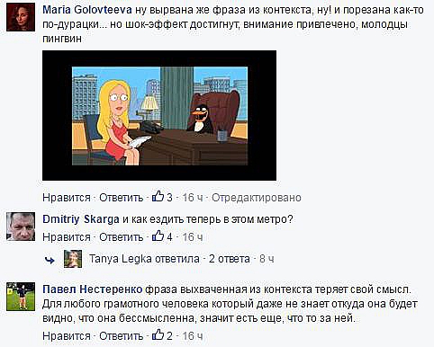 Этот постер, со столь тщательно отобранной (из всей русской литературы) фразой появился явно не случайно. Может быть «непреднамеренно». Но даже если так, то это пример «добровольной/неоплаченной» пропаганды, направленной на поддержание и углубление уже сформированной дивергенции (расхождения) цивилизаций», — написал он.