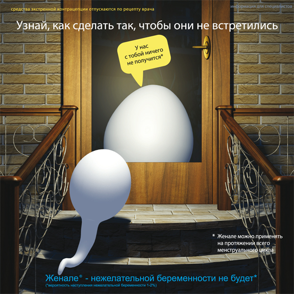Реклама препарата содержала следующую информацию: «Узнай, как сделать так, чтобы они не встретились. Экстренная контрацепция без гормонов. Узнай больше на сайте www.женале.рф или по телефону горячей линии».