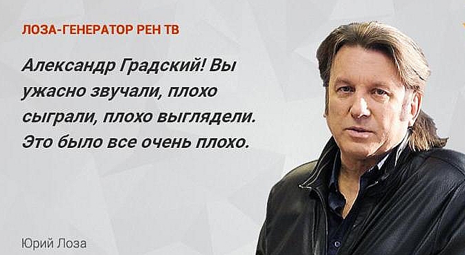 Напомним, что Лоза был участником группы «Зодчие», после чего начал сольную карьеру. Пик его популярности приходится на конец 1980-х и начало 1990-х. Широкой публике он известен прежде всего благодаря своему хиту «Плот». Юрий Лоза в последнее время прославился своими критическими высказываниями в адрес звезд рока, как отечественных, так и зарубежных. Например, по его словам, The Rolling Stones «гитару не настроили за всю жизнь ни разу», а Мик Джаггер «ни в одну ноту не попал».
