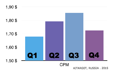 Одновременно увеличивалась эффективность размещения объявлений. Показатель конверсии просмотров в клики (CTR) вырос почти в полтора раза: с примерно 0,45% в первом квартале 2015 года до уровня в почти 0,9% в третьем и четвертом кварталах.