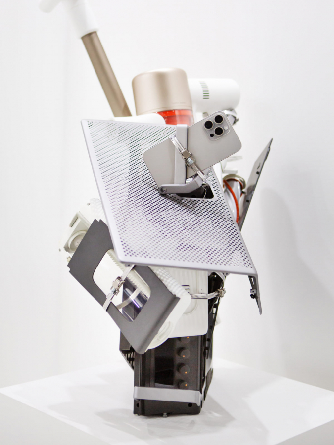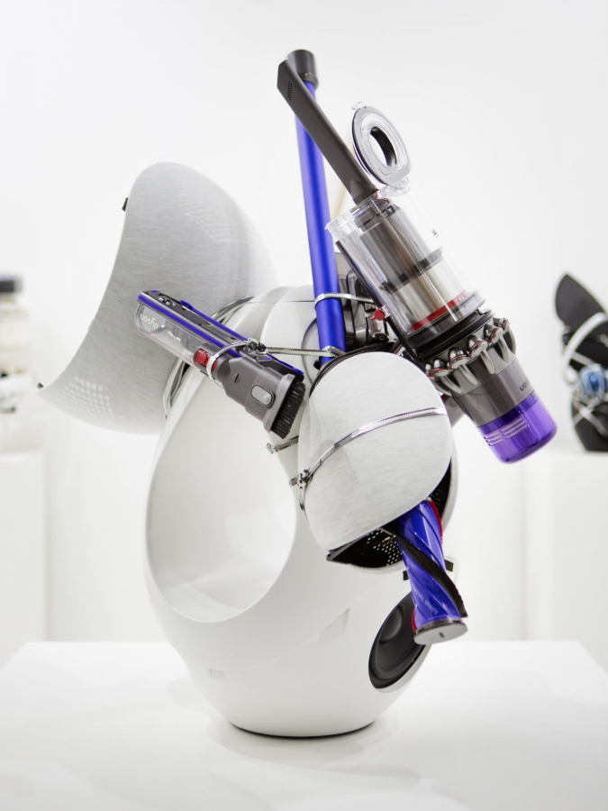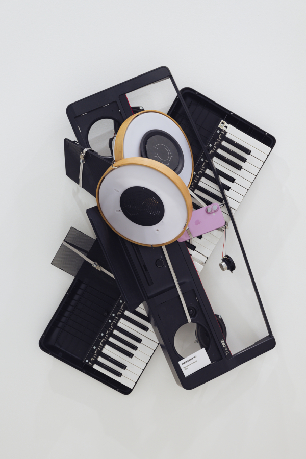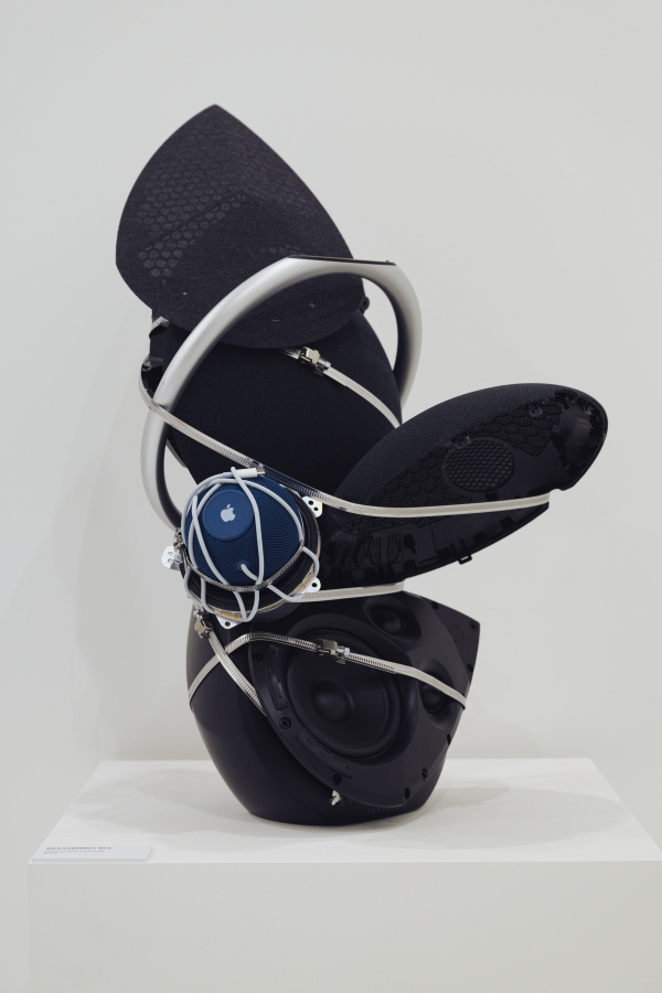 Девять работ из серии Reassembly пронумерованы от 1 до 9. Каждая вещь подразумевает некое взаимодействие этих предметов в комнате друг с другом. Так, например, в скульптуре с названием Reassembly № 7 умная лампа, электронное пианино и iPhone как бы сообщают нам информацию о владельце вещей, возможно, это музыкант, скролящий ленту после усердной репетиции, а возможно, ребенок, который устал от игры на пианино и смотрит любимый канал. В Reassembly № 1 есть намек, что работающая на полную громкость акустическая система Pantheone I даст возможность прекрасно слышать музыку, даже когда вы убираете дом Dyson V11 или решили размяться после работы за Apple Mac Mini.