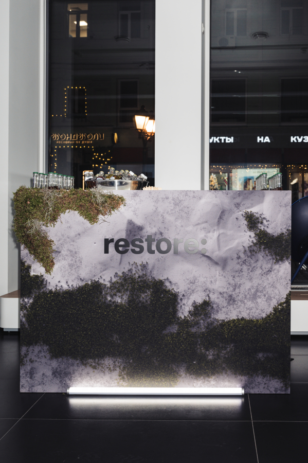 Друзьям бренда были предложены эксклюзивные коктейли The Sun, Afterglow и Ice Block, разработанные специально для restore:, соленые и сладкие закуски от шефа Валерия Линдстрема, а также праздничный торт со слоганом собственной торговой марки. Гости познакомились с DJ-сетом от Марка Щедрина. На площадке работала станция с переводными тату, стилизованными под тематику вечера.