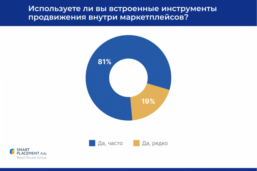 По данным опроса Smart Placement Ads и «Детского мира», лишь 19% респондентов «редко» используют внутренний рекламный инвентарь маркетплейсов. Среди причин респонденты отметили высокую стоимость (43%), сложности в настройке (29%), а также сомнения в эффективности инструмента (28%).
