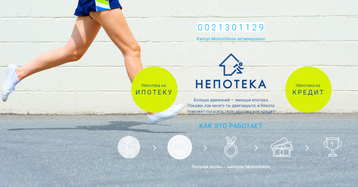 Агентства Grape, R&I (part of RCG) и What if Semin запустили необычный digital-проект «Непотека» для бренда Rexona. Специальный сайт предлагает погасить кредит или ипотеку с помощью собственных движений.