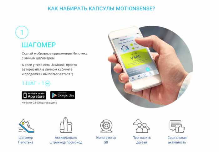 На портале непотека.рф каждую неделю проекта стартует новая гонка. Её основная цель - стать самым активным (в прямом смысле) участником недели. При этом создателями проекта предусмотрено сразу несколько вариантов активностей, не только спортивных, но и социальных. Еженедельный приз победителям - частичное погашение ипотеки или потребительского кредита, а в финале будет разыграно погашение ипотеки до 3 млн рублей.