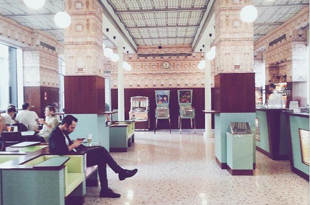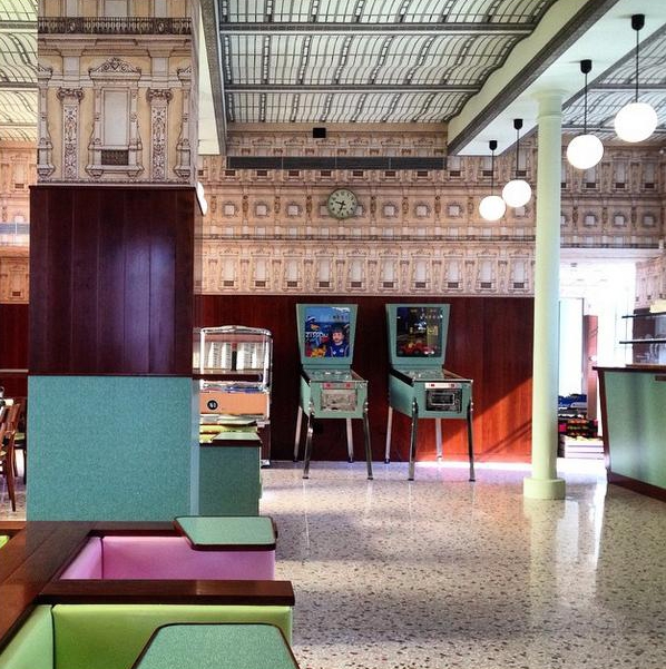 В заведении Уэс Андерсон попытался создать атмосферу миланского кафе. Вдохновением режиссеру послужили старые итальянские заведения. В интерьере нашлось место не только ретро-часам, но старому музыкальному автомату и даже аркадному пинболу. Открытие бара состоялось 9 мая.