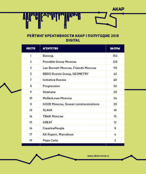 По результатам первой половины 2018 года в нем оказалось 13 агентств: Possible Group Moscow,
