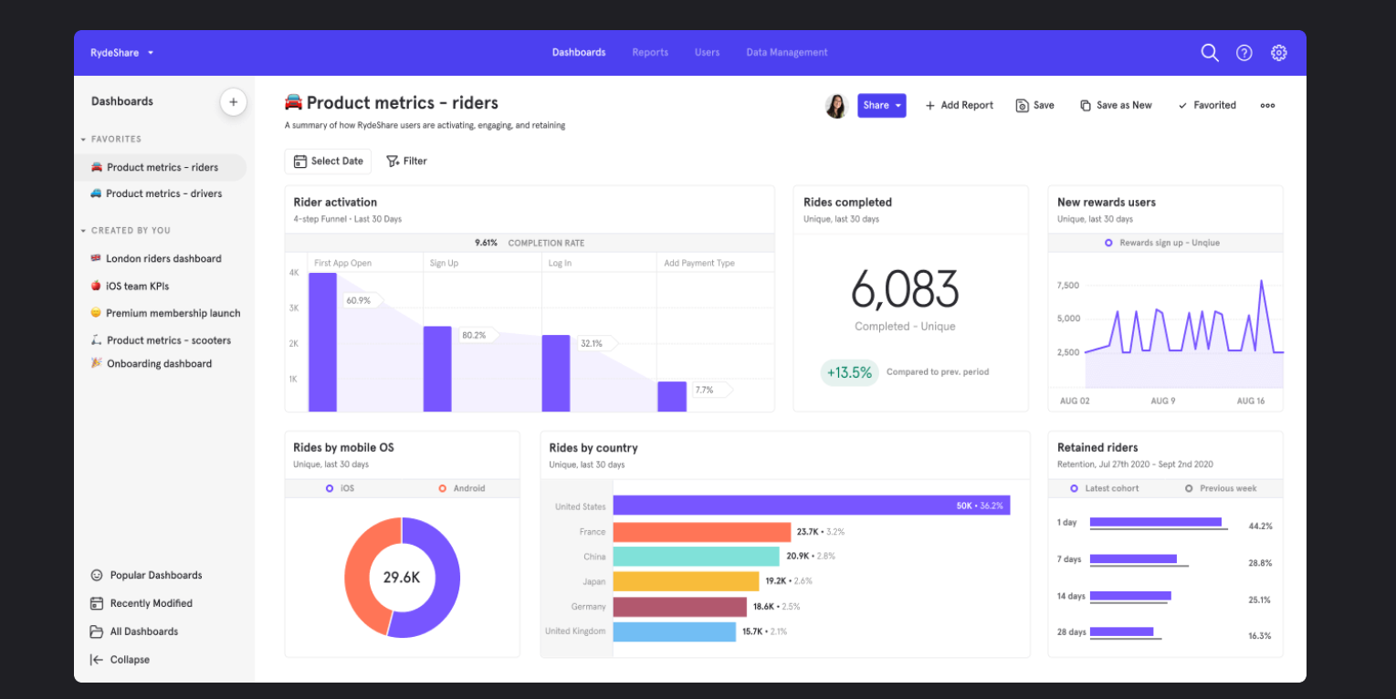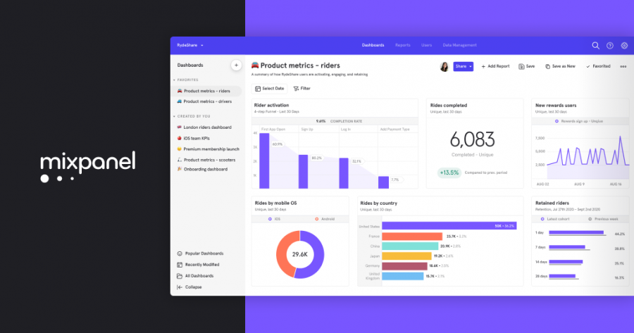 Mixpanel объединяет аналитику мобильных приложений и веб-сайтов, позволяет проводить A/B тестирования, оценивать эффективность внедрения нового функционала и понимать, как его использование влияет на все метрики в работе пользователя. Инструмент позволяет легко построить пользовательские профили и искать инсайты в поведении разных сегментов аудитории продукта. Экспорт сырых данных дает неограниченные возможности для решения самых нетривиальных задач.