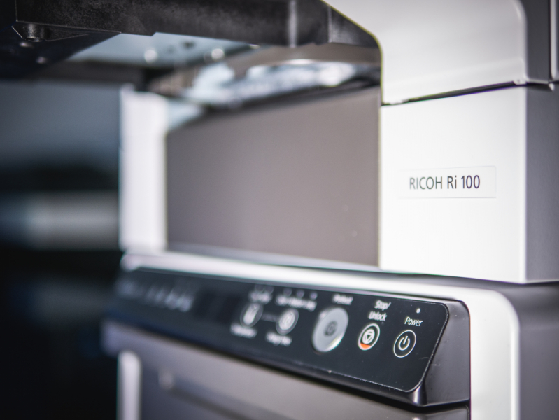 Простота использования и компактная конструкция RICOH Ri 100 позволят быстро адаптироваться под обстоятельства и оперативно запускать в производство лимитированные партии уникального ситуативного мерча.