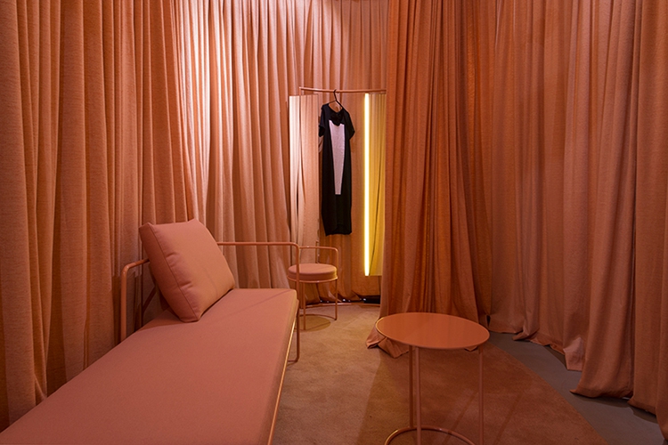 Концептуальный магазин Garderoba в Хорватии использует монохромный подход в оформлении бутика: розовый, желтый и зеленый. Эти отдельные сегменты подчеркивают их мантру медленных покупок, каждая из которых имитирует гардеробные капсулы, состоящие из разных стилей, которые покупателю рекомендуется примерить. Цвета служат не только для разделения и эстетического использования, но и как многофункциональные пространства. Использование этих смелых цветов в этих различных концептуальных магазинах помогает сделать пространство более ярким и захватывающим.