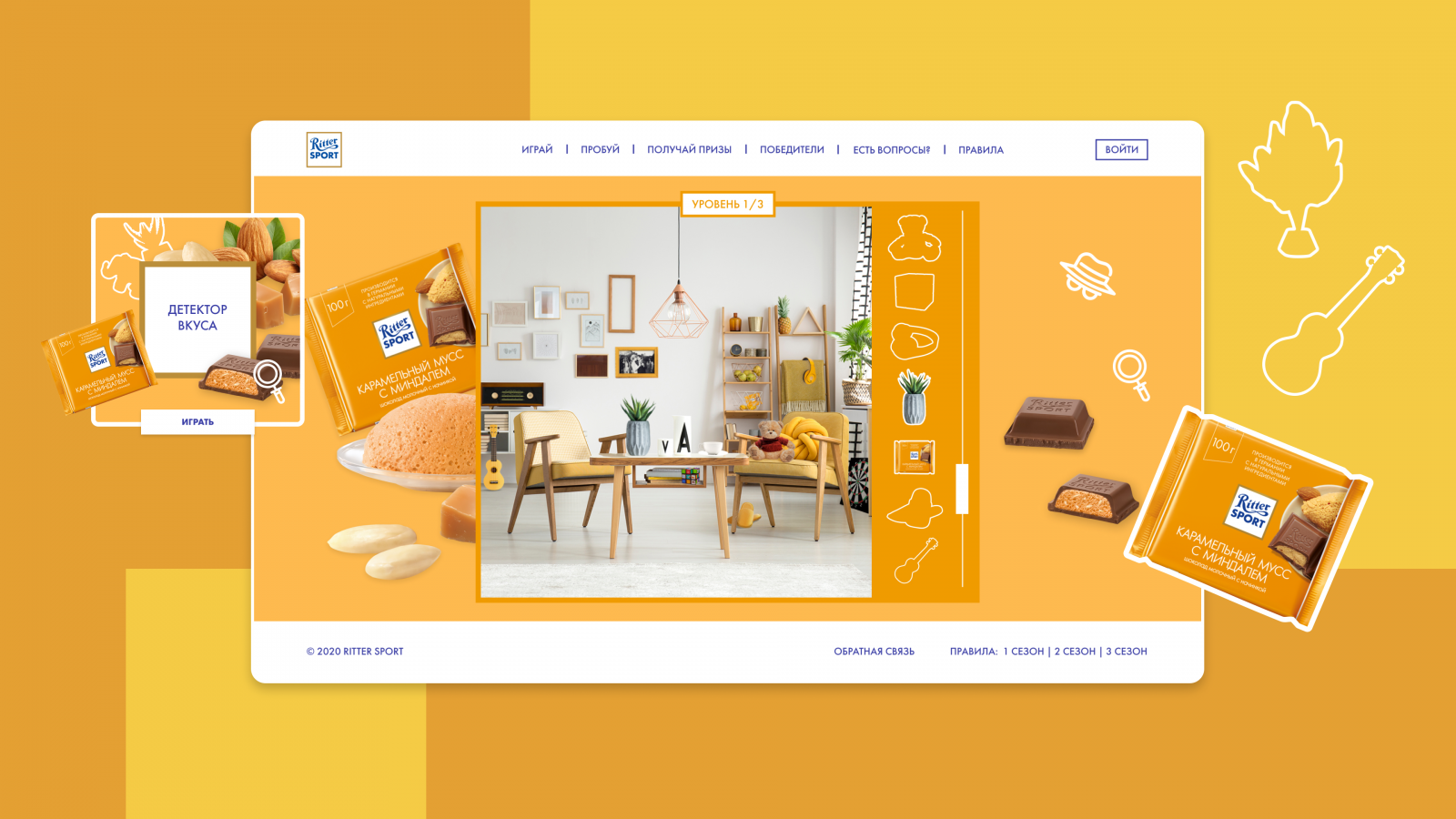Потребители ассоциируют Ritter Sport с высоким качеством шоколада, ингредиентов и широким разнообразием вкусов. Именно эти атрибуты, выгодно отличающие бренд от конкурентов, были интегрированы в геймплей нашего хаба. В интерактивных и вовлекающих механиках игр мы смогли не просто развлечь целевую аудиторию, а чётко заявить о своих преимуществах и поддержать имидж современного качественного бренда с большой продуктовой линейкой.
