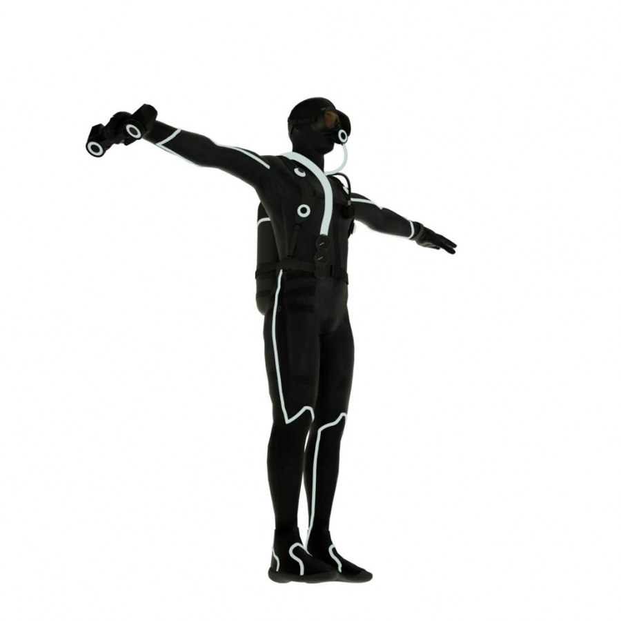 Нужно было добиться отсутствия светящихся точек — иначе это бы выглядело, будто водолаз запутался в новогодней гирлянде. Линия должна была быть ровной и единой. Нашей команде, которая отвечала за инженерную часть, пришлось «попотеть»: мы делали много тестов костюма в разном свете, при разных параметрах камеры. Но еще больше попотеть пришлось актеру-гимнасту Александру, потому что в этом костюме очень жарко. Облегчить его съемочный день мы смогли только кислородным баллоном — он был ненастоящим и весил очень мало.