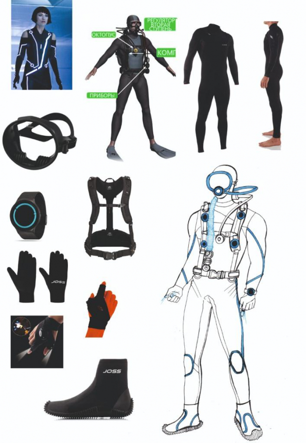 Выяснилось, что такие костюмы никто никогда не делал в России — костюмерам-инженерам нужно было создать их с нуля без подсказок от уже «бывалых» коллег. К гидрокостюму мы решили прикрепить специальную светодиодную ленту.