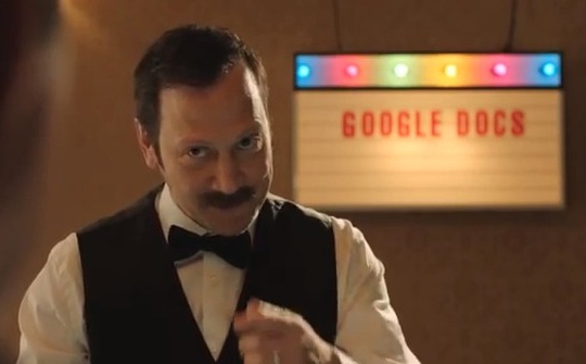 Боб Шнайдер, играющий за команду Google Docs, оказывается неумелым спортсменом, он закидывает мяч в собственную корзину, и в целом портит игру всей своей команде, признавая, что не способен соперничать с Microsoft Office.