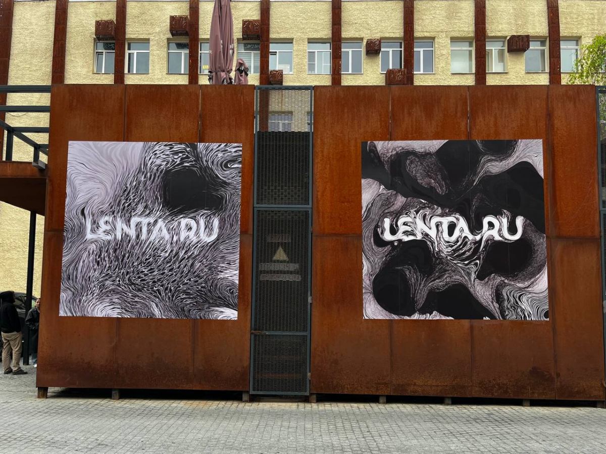 Проект разработали совместно с креативным кластером "Товарищество Рябовской мануфактуры". Изображения на полотнах обозначают новостной шум, а название издания посередине — авторитетность источника информации.
