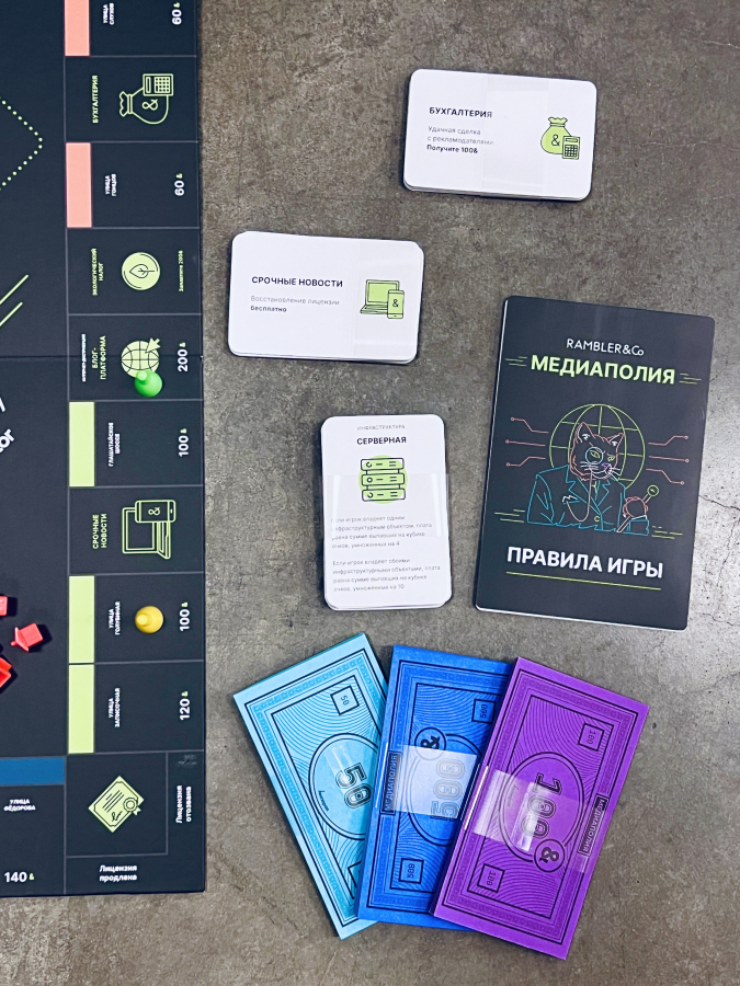 Медиахолдинг Rambler&Co креативно подошёл к подаркам для бизнес-партнёров, специалистов медиа и диджитал и создал "Медиаполию" - настольную игру. Она предлагает совершенно новый контекст и рассказывает о том, как развивать медиабизнес, сохраняя правила оригинальной "Монополии".