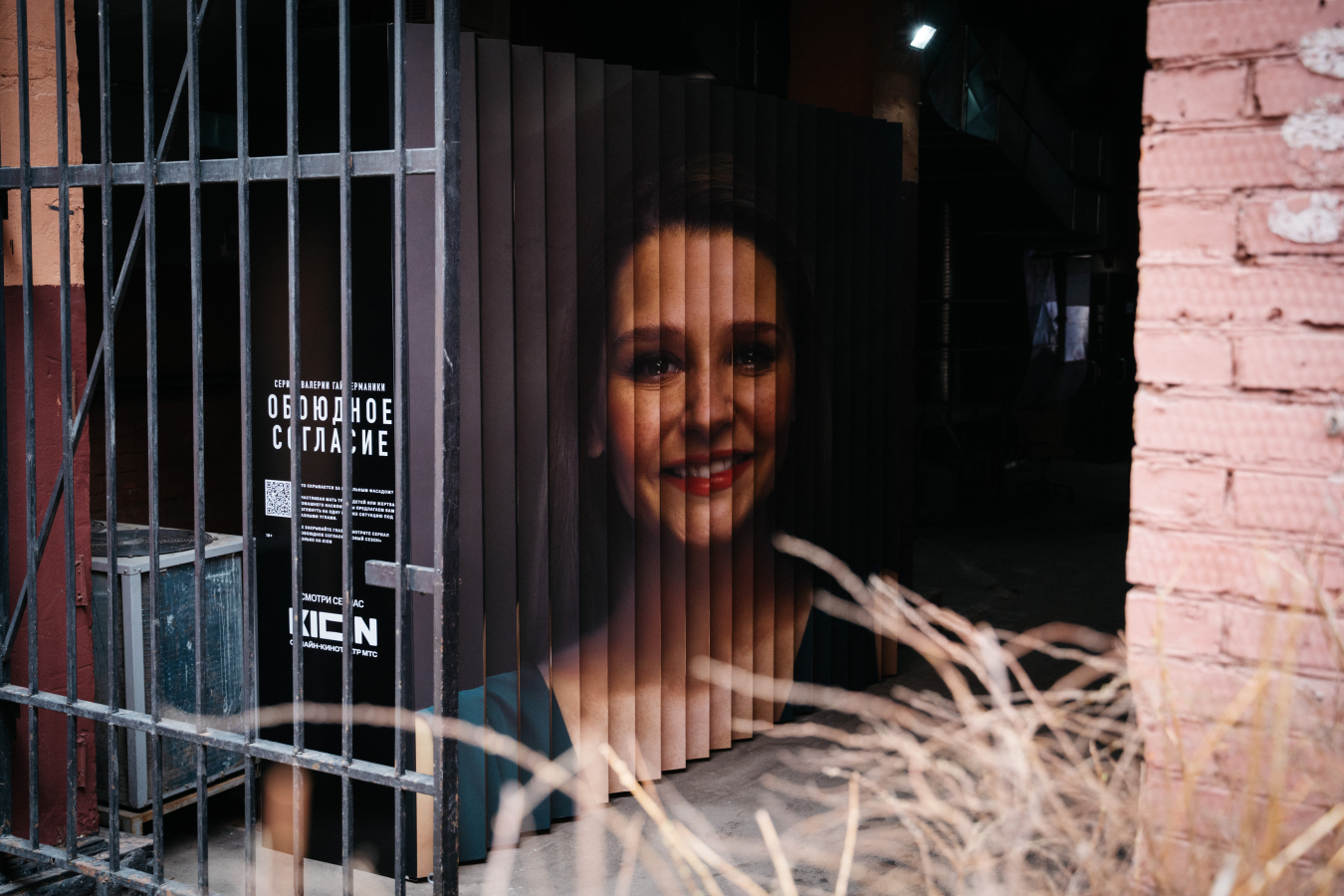 Онлайн-кинотеатр KION в преддверии премьеры нового сезона сериала "Обоюдное согласие" установил арт-объекты в пространствах "Красный Октябрь" и "Хлебозавод". Инсталляции представляли собой баннеры-гармошки, на которых изменялось изображение в зависимости от угла зрения. С одной стороны — лицо счастливой улыбающейся женщины. С другой — ее же заплаканное лицо с синяками.